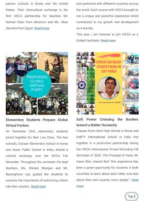 The IVECA Global Virtual Summer Camp and GVR event served as an unforgettable experience for many students, one student from Korea sharing that, “I will never forget the time when I could communicate with my friends and teachers from various countries and prepare various presentations together.” The Summer Camp course encouraged global collaboration and teamwork among the country’s team members and also between partners from different countries. The course shared a common goal of improving humanity through soft power, with one student reflecting that, “everyone will strive at their best so together we create a wonderful [place] to live.” The IVECA Global Virtual Roundtable was an exceptional event celebrating global partnerships and friendships.